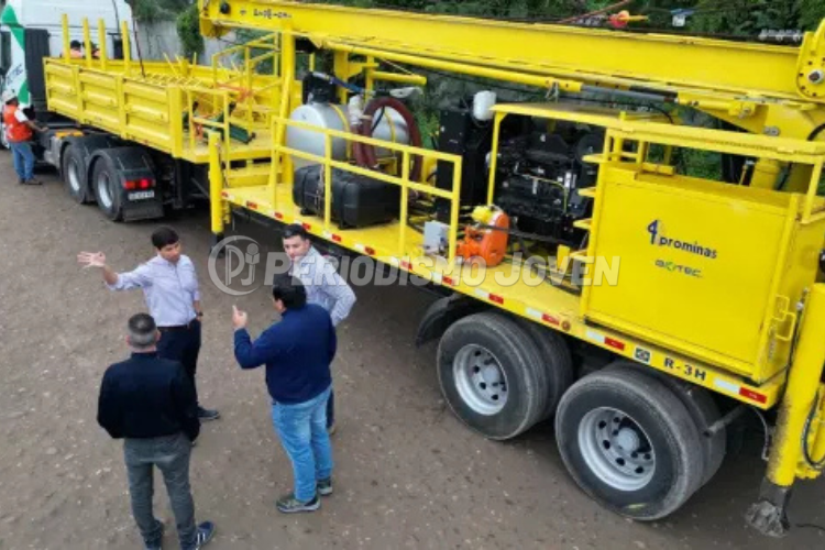 El presidente de Aguas del Norte, Ignacio Jarsún, junto al intendente de la ciudad de Orán, Baltasar Lara Gros, dio inicio a la perforación del nuevo pozo de agua ubicado en barrio 4 de junio.