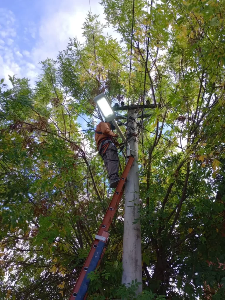 Asimismo, se llevaron adelante intervenciones vinculadas a la seguridad eléctrica, como el retiro de conexiones irregulares en espacios públicos, la elevación de conductores caídos y poda de árboles que afectaban el sistema de alumbrado.