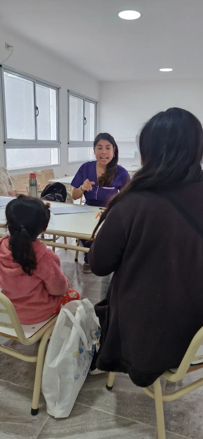 Durante las actividades, la trabajadora social Ana Paula Puzio y la psicóloga Evelin Pomar acompañaron a la coordinadora del CPI, Sofía Petillo, en la realización de entrevistas a las familias interesadas en el ingreso de sus hijos al espacio.