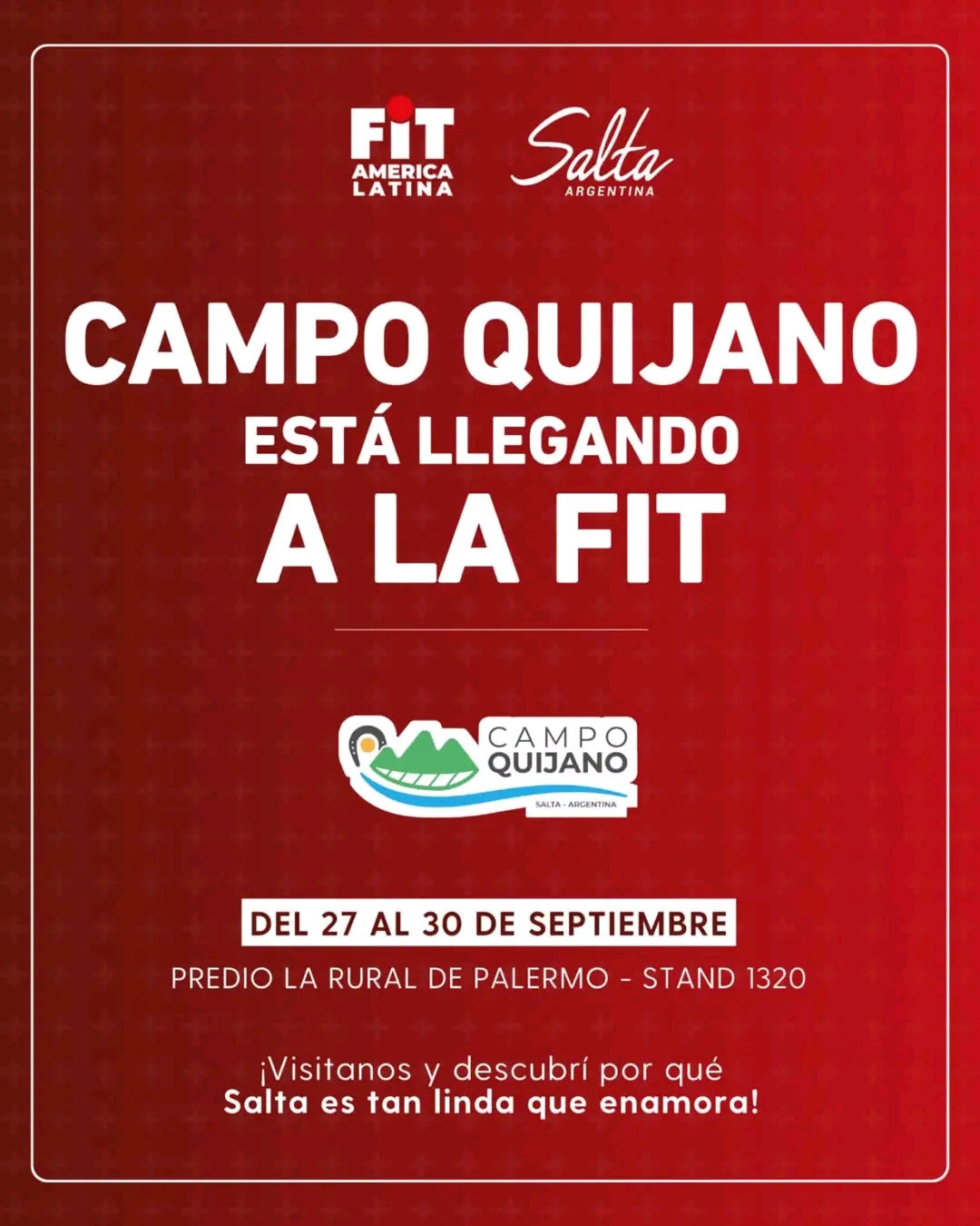 Campo Quijano dirá presente en la Feria Internacional de Turismo (FIT) 2025, que se desarrollará del 27 al 30 de septiembre en La Rural, Buenos Aires.
