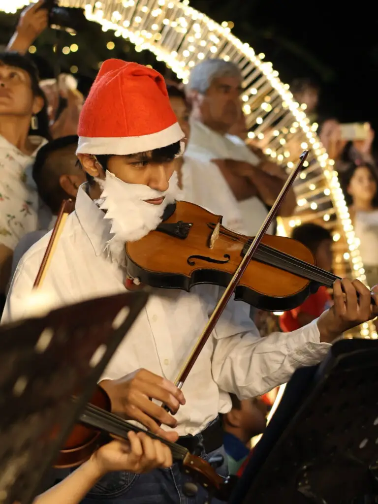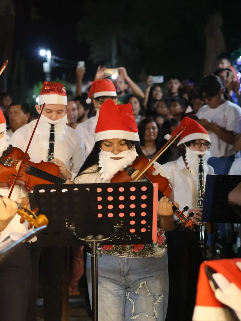 La celebración continuó con la presentación de la Orquesta Sinfónica Infantil y Juvenil de Salta, dirigida por Carolina Pineda, que ofreció un repertorio especialmente pensado para la ocasión. El concierto incluyó villancicos tradicionales como Jingle Bells, obras de María Elena Walsh, ritmos del norte argentino como El Humahuaqueño, un popurrí de canciones de The Beatles y versiones recreativas como Supercalifragilístico espialidoso y la versión Minions de The Beatles. Durante la presentación, los músicos compartieron con el público una explicación sobre los distintos instrumentos que integran la orquesta, permitiendo a grandes y chicos conocerlos y escucharlos de manera individual.