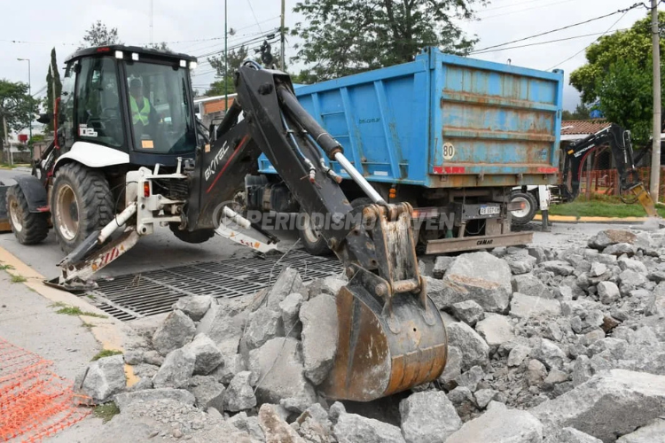El titular de la Secretaría de Obras Públicas, Gastón Viola, explicó que durante la jornada se iniciaron las tareas de demolición para el retiro de la rejilla dañada, como primer paso del proceso de recambio.