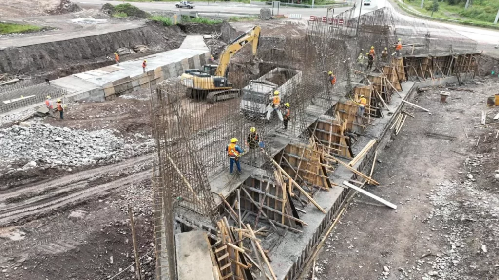 Paralelamente, se realiza el llenado con hormigón de las bases de los estribos del puente que se localizará en nudo con la RP 24 e iniciaron las excavaciones para las bases del puente que se ubicará en el nudo con la RP 23.