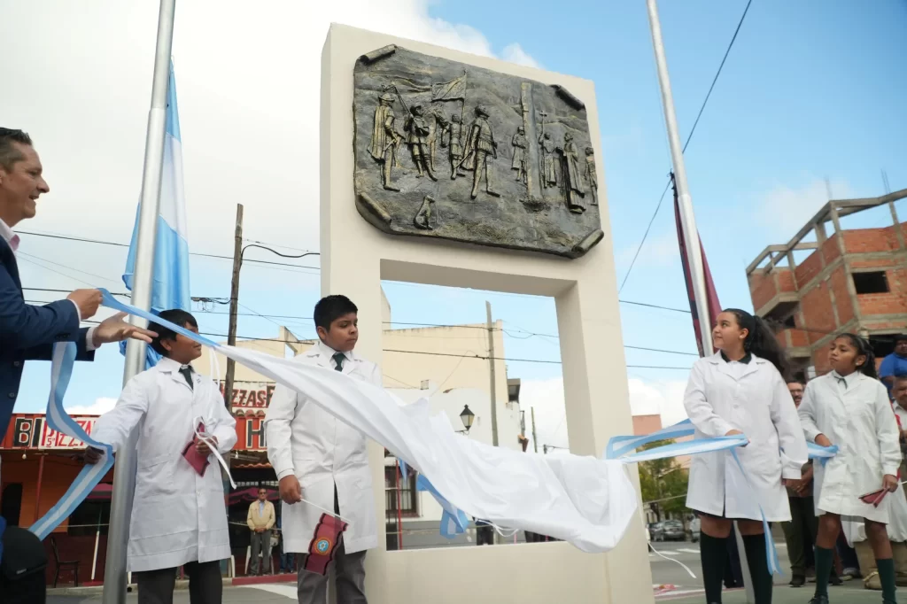 Durante la jornada también se vivió uno de los momentos destacados: el descubrimiento de un relieve escultórico en homenaje a la fundación de la ciudad, realizado por el escultor y profesor Ricardo Serrudo.