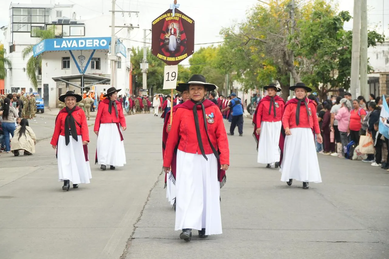 El acto culminó con el tradicional desfile cívico-militar, en el que participaron instituciones educativas, fuerzas de seguridad y organizaciones de la comunidad, en una mañana que combinó memoria histórica, identidad y expresión artística.