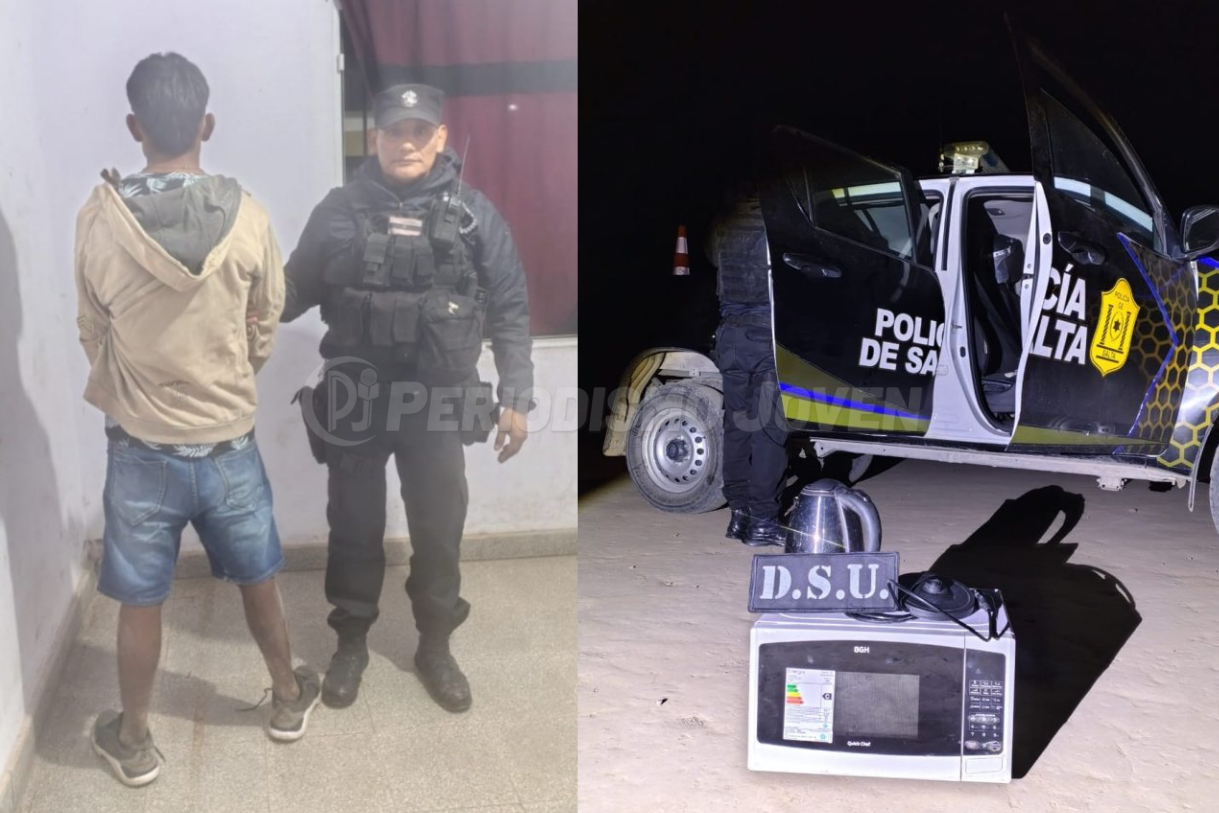 Al identificarlo, no supo justificar propiedad. Se secuestró un microondas y una pava eléctrica.
