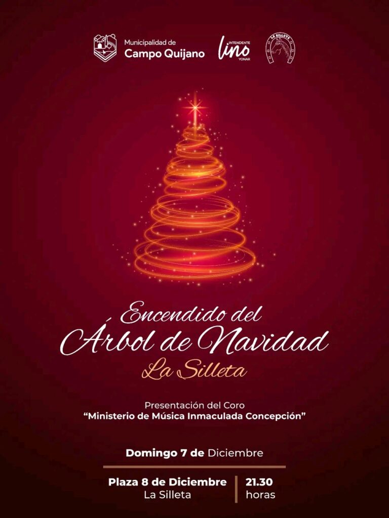 La Municipalidad de Campo Quijano realizará este domingo una de las celebraciones más esperadas en el marco de las Fiestas Patronales en honor a la Inmaculada Concepción de María: el Encendido del Árbol de Navidad en La Silleta, una noche cargada de tradición, fe y espíritu comunitario.