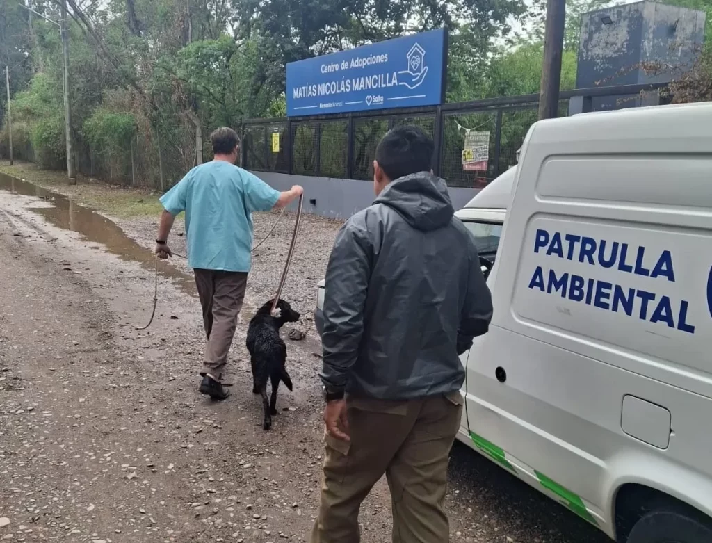 Trabajadores de la Patrulla Ambiental actuaron de inmediato. El hecho ocurrió en el canal de calle San Juan y Gorriti. El animal fue trasladado al centro de adopciones Nicolas Mansilla, donde quedó alojado. Por cualquier información comunicarse a las redes sociales del municipio.