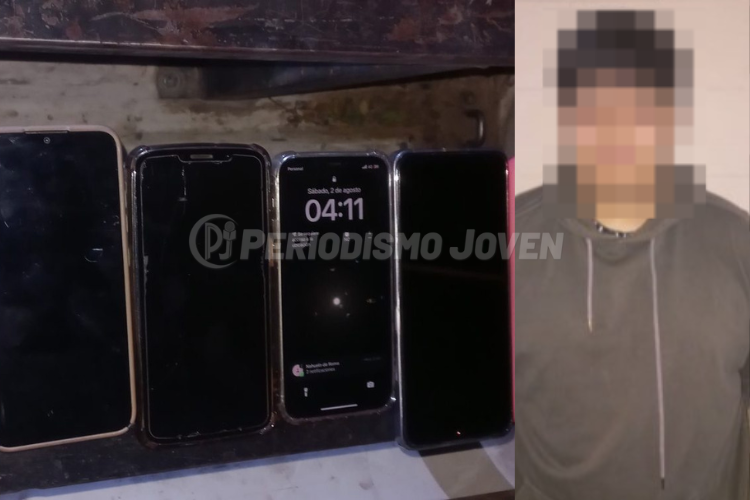 Los uniformados detectaron maniobras sospechosas del sujeto que operaba bajo la modalidad de descuidista. Se recuperaron siete celulares sustraídos.