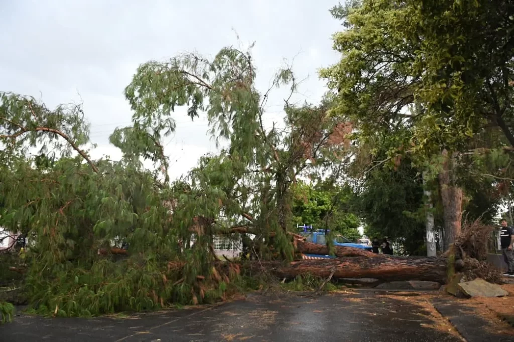 Distintas áreas municipales trabajan de manera coordinada en diferentes puntos de la ciudad para atender situaciones derivadas del temporal. Se recomienda extremar medidas de seguridad y comunicarse a la línea 105 en caso de incidentes.