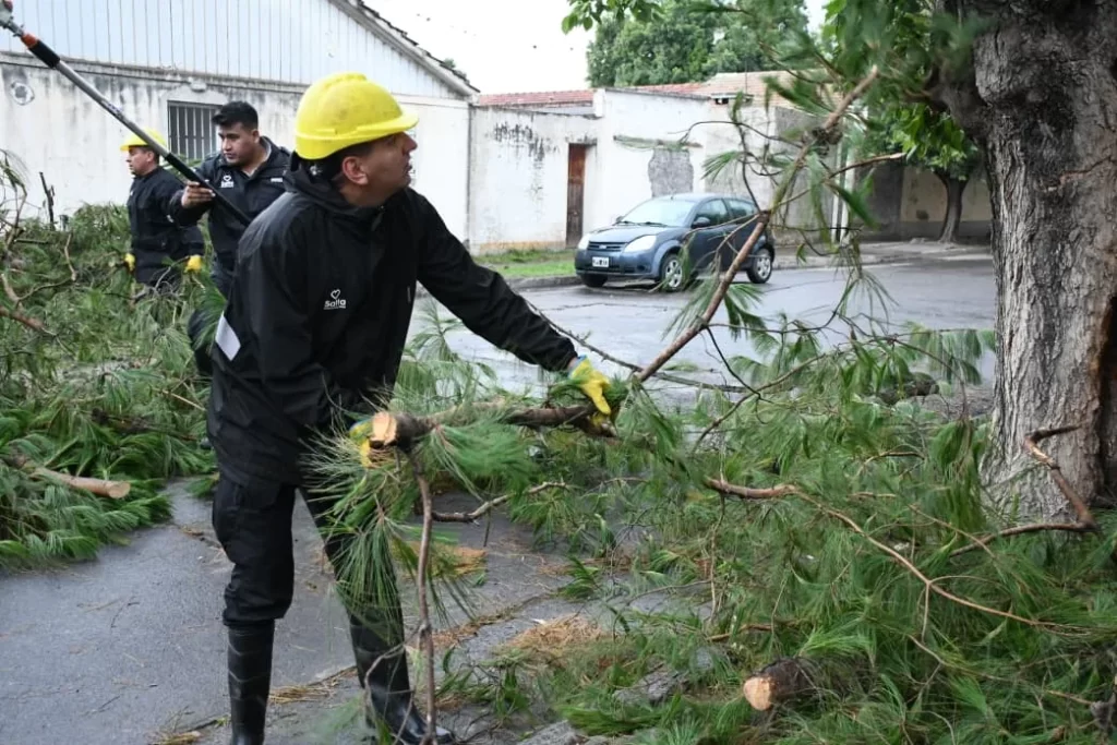 Ante la tormenta registrada, el municipio desplegó equipos de trabajo en distintos sectores con el objetivo de asistir a los vecinos y reducir riesgos mientras se desarrolló el fenómeno climático.