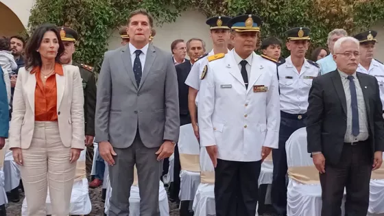 El secretario de Seguridad de la Provincia, Nicolás Avellaneda, y el jefe de la División Unidad Operativa Salta, Alfredo Jesús Carabajal, encabezaron el acto central por el 204° aniversario de la Policía Federal Argentina desarrollado en el patio central del Cabildo Histórico.