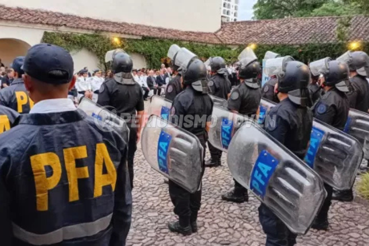 El secretario de Seguridad de la Provincia, Nicolás Avellaneda, y el jefe de la División Unidad Operativa Salta, Alfredo Jesús Carabajal, encabezaron el acto central por el 204° aniversario de la Policía Federal Argentina desarrollado en el patio central del Cabildo Histórico.