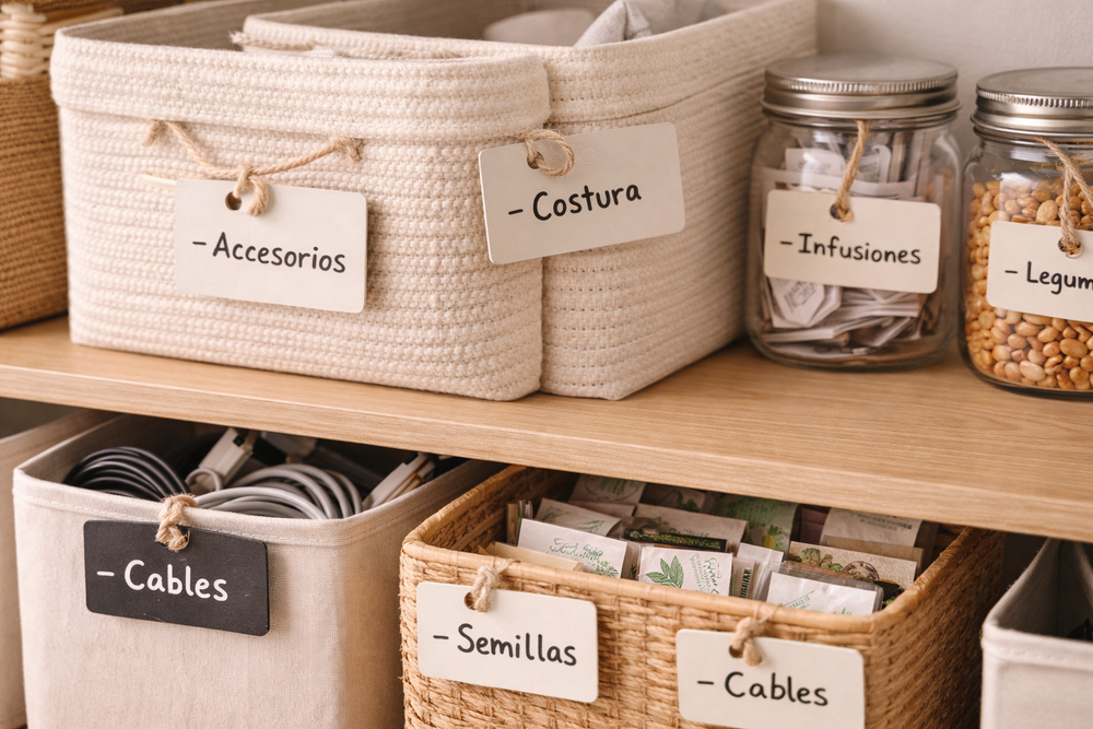 Atalas a canastos, frascos, cajas de tela, cajones organizadores o contenedores transparentes. Ahí es donde el proyecto cobra sentido: todo queda más claro, más prolijo y visualmente mejor resuelto.