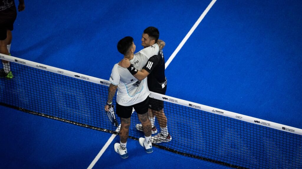 Fue 6-7 6-4 y 7-5 el marcador que quedó en el tablero electrónico del Arena de Madrid y el abrazo y las palabras entre el Tolito Aguirre y el Salteño quedarán en la historia del torneo y del Fair Play del Padel y marcan también un cierre de año inesperado en Salta por qué se habla de una posibilidad de clínica y exhibición en Diciembre que tendrían al embajador Salteño junto con el Tolito Aguirre como figuras estelares , sería un cierre de lujo para el padel Salteño