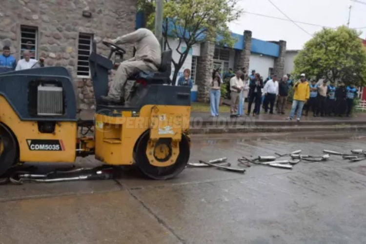 El subsecretario de Seguridad Vial, Francisco Fleming y el intendente de Rosario de la Frontera, Kuldepp Singh participaron del operativo para la compactación de caños de escape retenidos en virtud de actas de infracciones labradas en los distintos procedimientos que se realizaron en la jurisdicción municipal.
