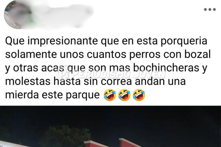 “Qué impresionante que en esta porquería solamente unos cuantos perros con bozal y otras acá que son más bochincheras y molestas, hasta sin correa andan. Una mierda este parque”, escribió, sin guardarse nada.