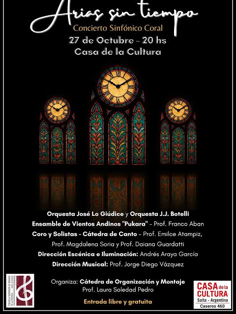 La nueva edición del concierto “Arias sin tiempo” es una propuesta que reúne el carácter emocional de la música sacra, la intensidad dramática del repertorio operístico y la calidez de las melodías populares reimaginadas en formato sinfónico-coral.