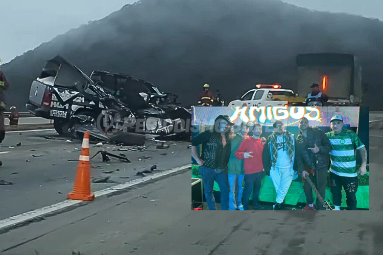 Una camioneta Volkswagen Amarok, en la que viajaban miembros del grupo musical Sonido Básico, impactó violentamente contra un camión de gran porte.