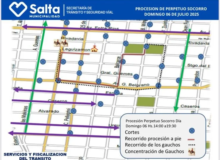 La celebración se realizará el domingo 6 de julio desde las 14 hs. en las inmediaciones del templo. Se ejecutarán cortes totales y desvíos para el recorrido de la procesión y ceremonia central. Se recomienda a los automovilistas utilizar vías alternativas.