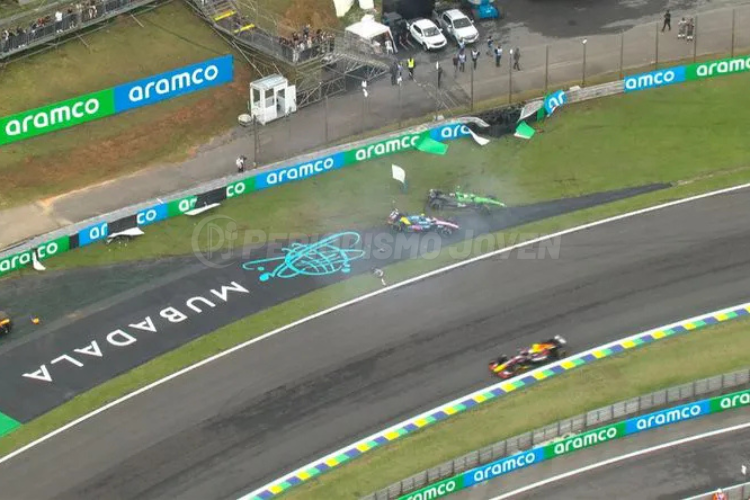Todo ocurrió durante la sexta vuelta de la carrera, sobre la curva tres del circuito de Interlagos y luego de que piloto de McLaren, Lando Norris, en medio de fuerte clima de lluvias que azotaron a la ciudad de San Pablo, toque el piano, metiera agua en la pista y ocasione que los autos perdieran el control.