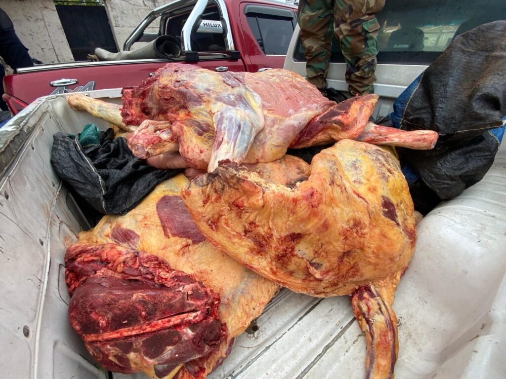 El procedimiento se realizó ayer durante un control preventivo por efectivos de la Policía Rural y de la Brigada de Investigaciones. Se secuestraron y decomisaron 750 kilos de producto cárnico. Intervino el Juzgado de Garantías de Joaquín V. González.