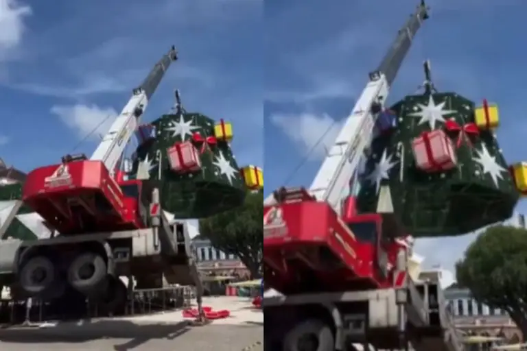 En el momento del accidente, el operador estaba vestido de Papá Noel y fue filmado saltando de la cabina justo antes del colapso.