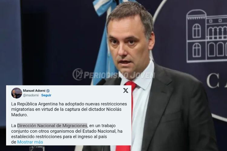 El jefe de Gabinete, Manuel Adorni, anunció este sábado nuevas restricciones migratorias sobre ciudadanos venezolanos relacionados con el régimen chavista tras la captura de Nicolás Maduro y su esposa de parte de Estados Unidos.