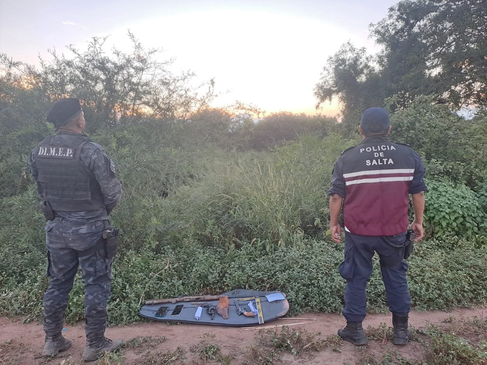 La intervención se inició cuando una patrulla que realizaba recorrido preventivo observó a tres sujetos correr por calle Mitre. Al advertir la presencia policial, ingresaron a un descampado e intentaron ocultarse entre las malezas, donde fueron interceptados.