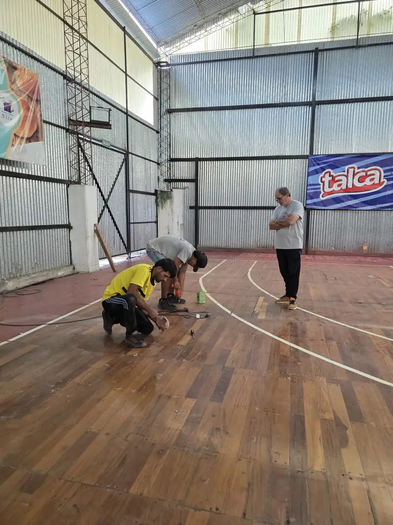 Para llevar adelante esta tarea, el municipio contrató el servicio de una empresa especializada proveniente de la provincia de Santa Fe, que realiza la restauración mediante un trabajo artesanal, respetando las características originales del tradicional piso del club.